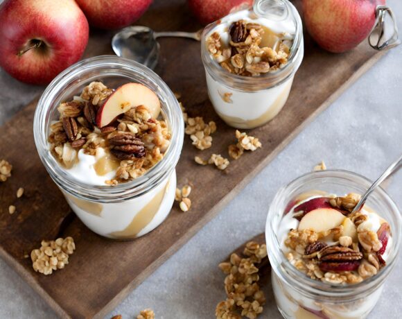 Roasted Apple Greek Yogurt Parfait with Granola, Cinnamon and Honey