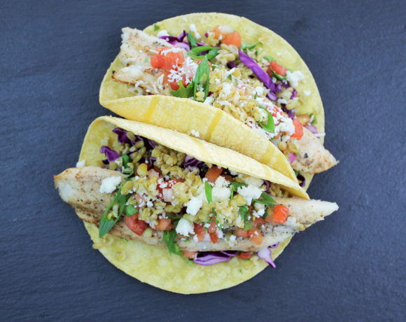 Grilled Fish Taco with Freekeh, Cilantro and Tomatoes