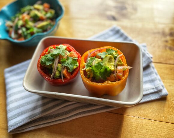 Mexican Tempeh Stuffed Peppers with Avocado Salad