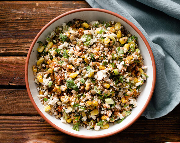 - Meanwhile – preheat grill to medium high heat and grill corn, 4-6 minutes, turning as needed, until lightly charred. Remove from grill and let cool. Cut kernels from cob and set aside.
