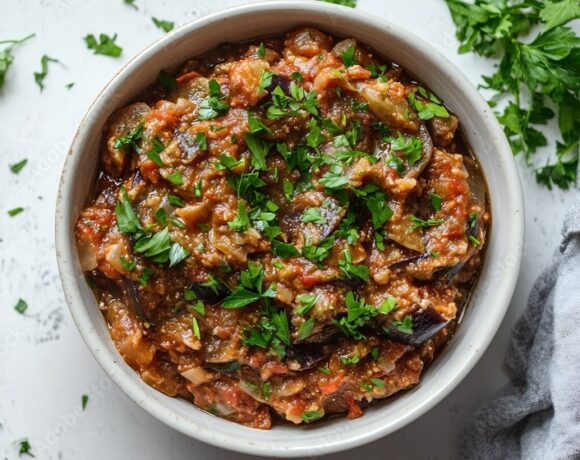 Eggplant Red Pepper Dip with Baguette