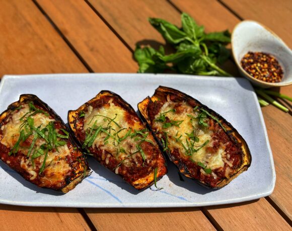 Mushroom and Sausage Stuffed Eggplant