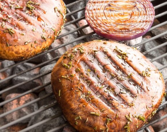 Grilled Portobello Mushroom Burgers with Roasted Potato Wedges
