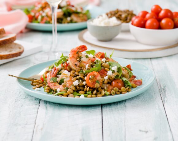 Shrimp with White Wine, Lentils and Tomatoes