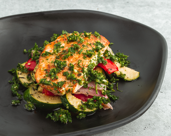 Chimichurri Rockfish over Grilled Vegetables