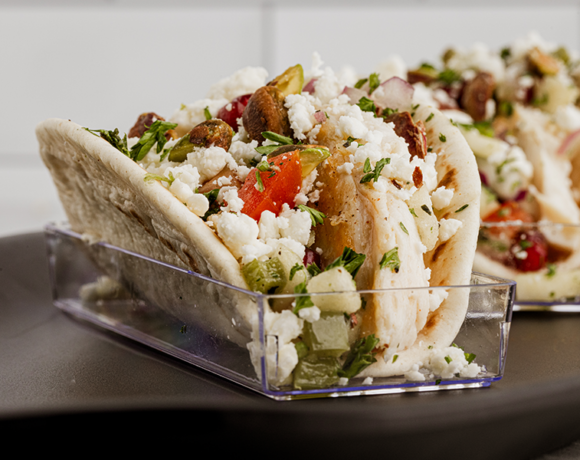 Rockfish Tacos with Cranberry Apple Salsa, Cotija, Pumpkin Seeds on Corn Tortillas