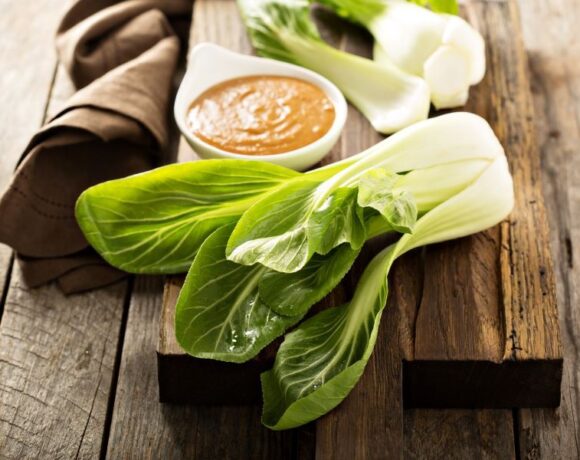 Miso Tahini Roasted Bok Choy with Crushed Peanuts