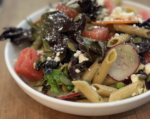 Watermelon Feta Pasta Salad with Pumpkin Seeds