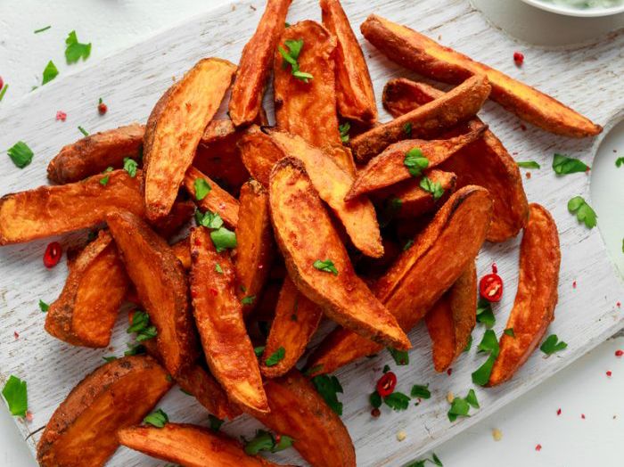 We love using this method to make smoky sweet potato wedges that won’t stick to the pan! Serve with a creamy sauce.