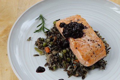 Pan-seared salmon with savory blueberry chutney. This chutney is great on chicken or pancakes too! Don’t overcook it, you want to leave some whole fruit in the chutney.