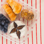 To assemble: In four compartment box, place 1/2 cup blueberries, 1/3 cup whipped cottage cheese with fig quarters on top, croissant cut in half and 2 peanut butter balls.