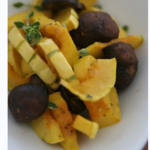 Oven roasted delicata squash with crimini mushrooms and thyme