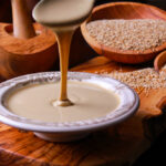 In a bowl or mason jar, combine toasted sesame seeds and cinnamon add the apple cider vinegar, lemon juice, apple cider and Tahini. Whisk or shake to combine.